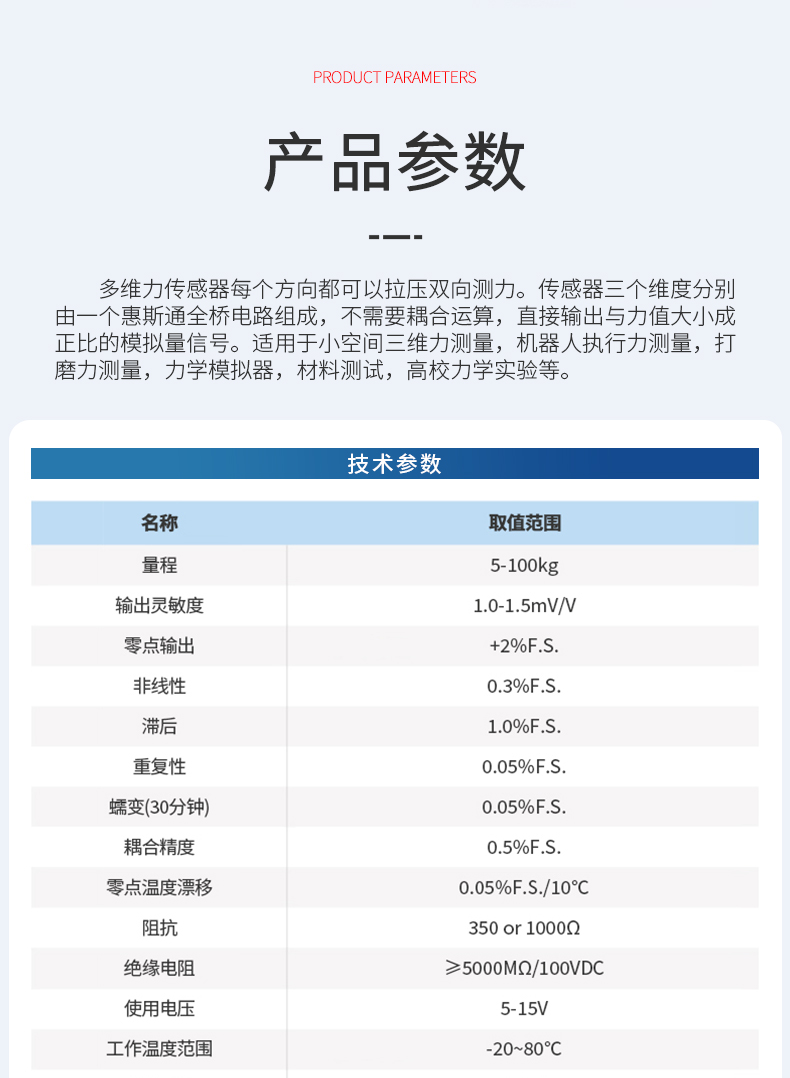多維度精準(zhǔn)測(cè)量:可同時(shí)測(cè)量X、Y、Z三個(gè)方向的拉壓力,精準(zhǔn)捕捉復(fù)雜力場(chǎng)數(shù)據(jù),為您的設(shè)備提供全面力感知支持。